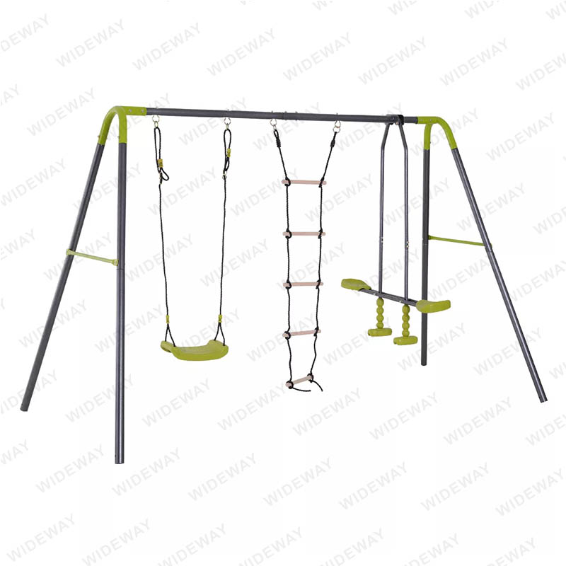 ให้โอกาสลูก ๆ ของคุณเพลิดเพลินไปกับประสบการณ์สนามเด็กเล่นที่แท้จริงอย่างปลอดภัย! ชุดชิงช้าเด็กแบบ 3-IN-1 สำหรับสนามหลังบ้านพร้อมที่นั่งแบบสวิง เครื่องร่อน และบันไดปีนเขาจาก WIDEWAY® ช่วยให้เด็กๆ สนุกสนานเป็นเรื่องง่าย ชุดสวิงผลิตจากท่อโลหะสำหรับงานหนัก ทนทานต่อสภาพอากาศ จึงใช้งานได้ยาวนานและเชื่อถือได้ จากชื่อผลิตภัณฑ์ คุณจะเห็นว่ามีชิงช้า 1 อัน เครื่องร่อนพร้อมที่วางเท้า 1 อัน และบันไดเชือกปีน 1 อัน เด็กๆ ของคุณจะได้สนุกสนานกันหลายชั่วโมง!
