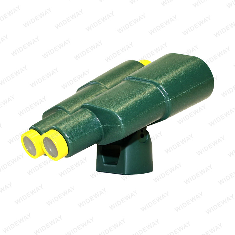 อุปกรณ์เสริมชุดกล้องส่องทางไกลของเล่นพลาสติกขนาดใหญ่พิเศษมีตัวกล้องและฐานพร้อมดีไซน์กล้องสองตาขี้เล่น มาในการผสมสีเขียวและสีเหลืองมาตรฐาน แต่สามารถเพิ่มสีที่กำหนดเองได้ตามคำขอ กล้องส่องทางไกลได้รับการออกแบบทางวิศวกรรมให้มีความแข็งแรงและทนทาน สามารถทนต่อการเล่นกลางแจ้งที่สมบุกสมบันได้ การออกแบบนี้เน้นไปที่จินตนาการและความสนใจของเด็ก โดยให้ความรู้สึกที่สมจริง และช่วยให้เด็กๆ ปรับมุมของกล้องส่องทางไกลได้ ซึ่งสามารถยกขึ้นหรือลงได้ เพื่อให้พวกเขาสามารถสำรวจสภาพแวดล้อมโดยรอบได้อย่างละเอียด