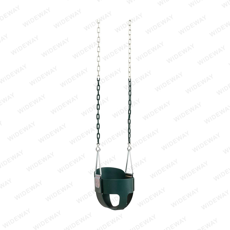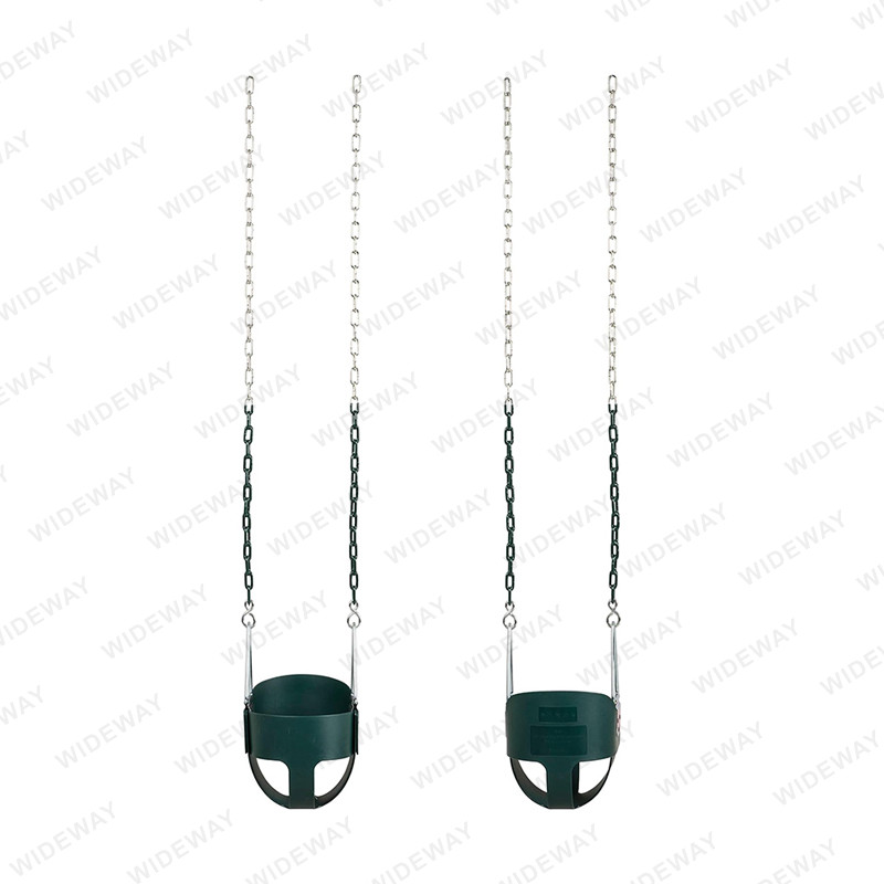 ที่นั่งแบบสวิงสำหรับเด็กวัยหัดเดินแบบหลังสูงสำหรับงานหนักมาพร้อมกับโซ่ที่แข็งแรงและทนทานซึ่งเคลือบด้วยชั้นป้องกันของพลาสติกเพื่อป้องกันสนิมและการกัดกร่อน โซ่ยังมีข้อต่อด่วนที่ช่วยให้ติดเบาะเข้ากับอุปกรณ์สนามเด็กเล่นได้ง่าย วงสวิงทั้งหมดได้รับการออกแบบทางวิศวกรรมให้เกินมาตรฐานความปลอดภัย และได้รับการทดสอบและรับรองโดยหน่วยงานกำกับดูแลในด้านความยืดหยุ่นและความทนทาน
